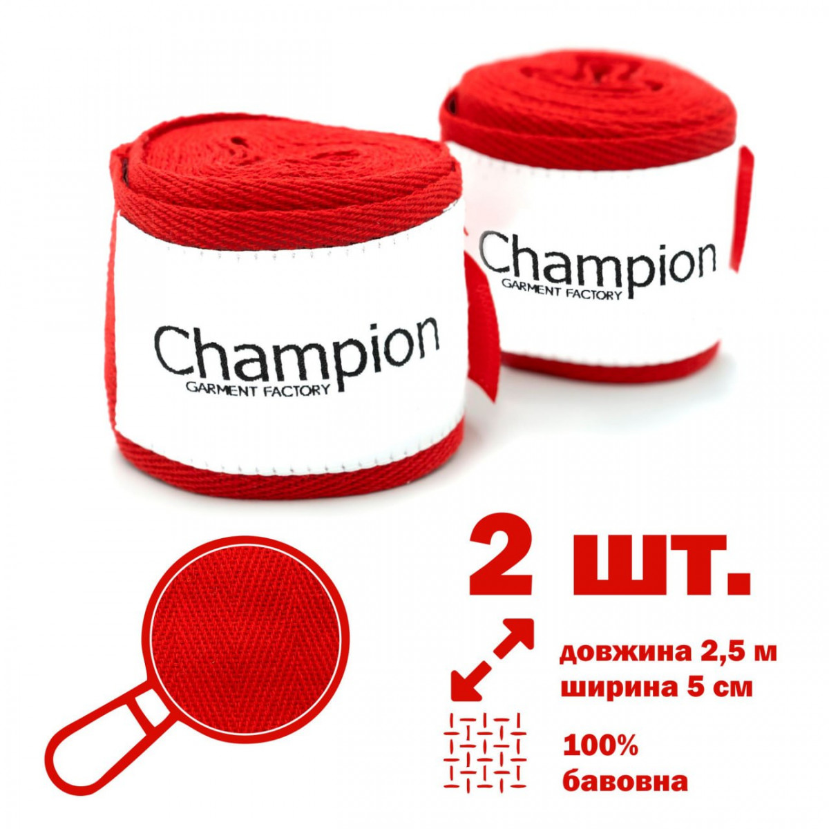 Бинти боксерські Champion 2.5 м бавовна Червоний (00026)