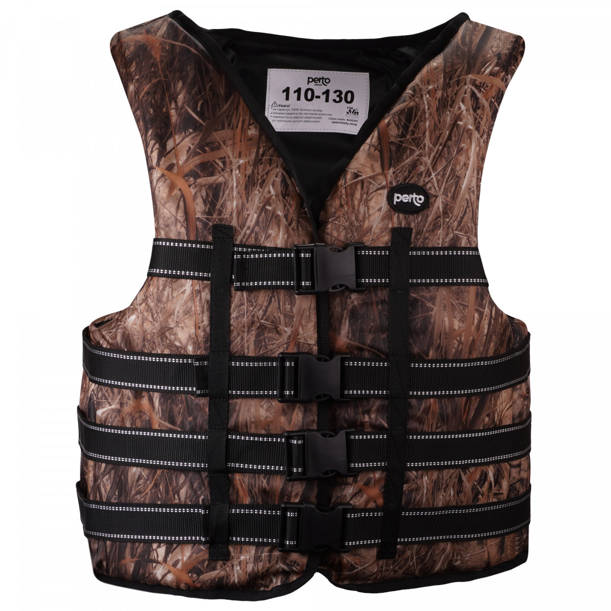 Жилет страхувальний PERTO Camo reeds 110-130 Камуфляж - Очерет оснащений чотирма надійними закріплювальними ременями, що дає можливість добре триматися на тілі.