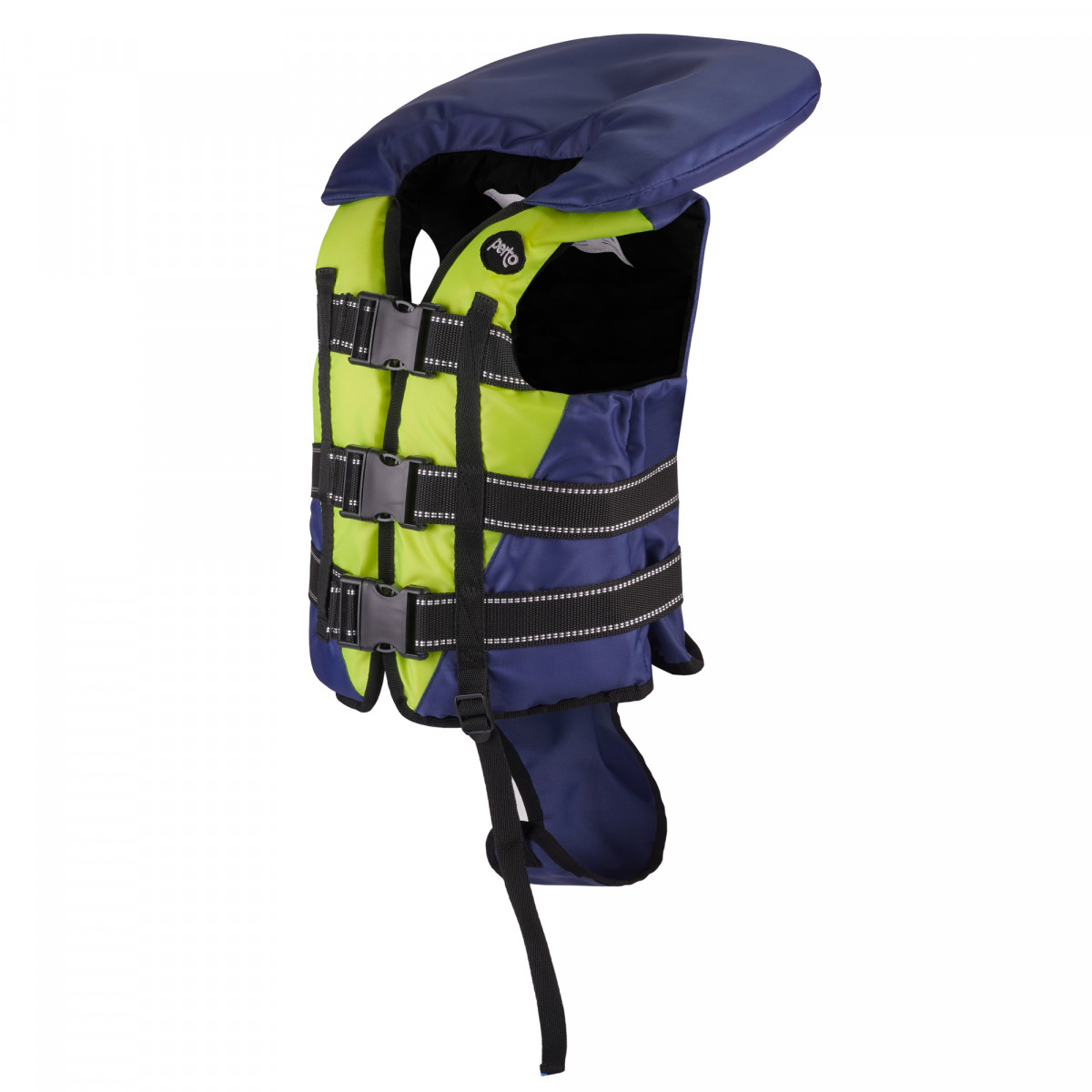 Жилет страхувальний PERTO Classic blue 10-30 дитячий Салатово-Синього кольору оснащений трьома надійними закріплювальними ременями, коміром-підголовником, паховим ременем, який забезпечує додатковий захист. Лямка на підголівнику дозволить батькам контролювати положення дитини у воді. Верхня частина спинки заповнена наповнювачем, а в нижній частині він відсутній, що дає можливість дитині триматися на воді як поплавець.
