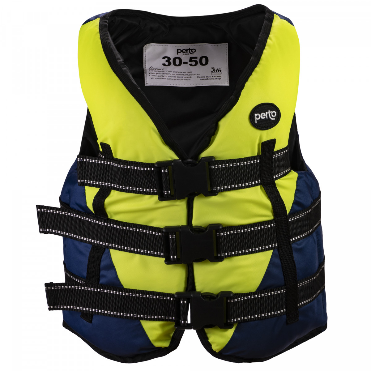 Жилет страхувальний PERTO Classic blue 30-50 Салатово-Синього кольору для підлітка оснащений трьома надійними закріплювальними ременями, що дає можливість добре триматися на тілі.
