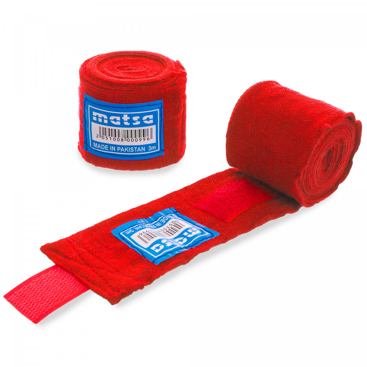 Бинты боксерские (2 шт) хлопок с эластаном MATSA 3.0 м Красный (MA-0031-3.0R)