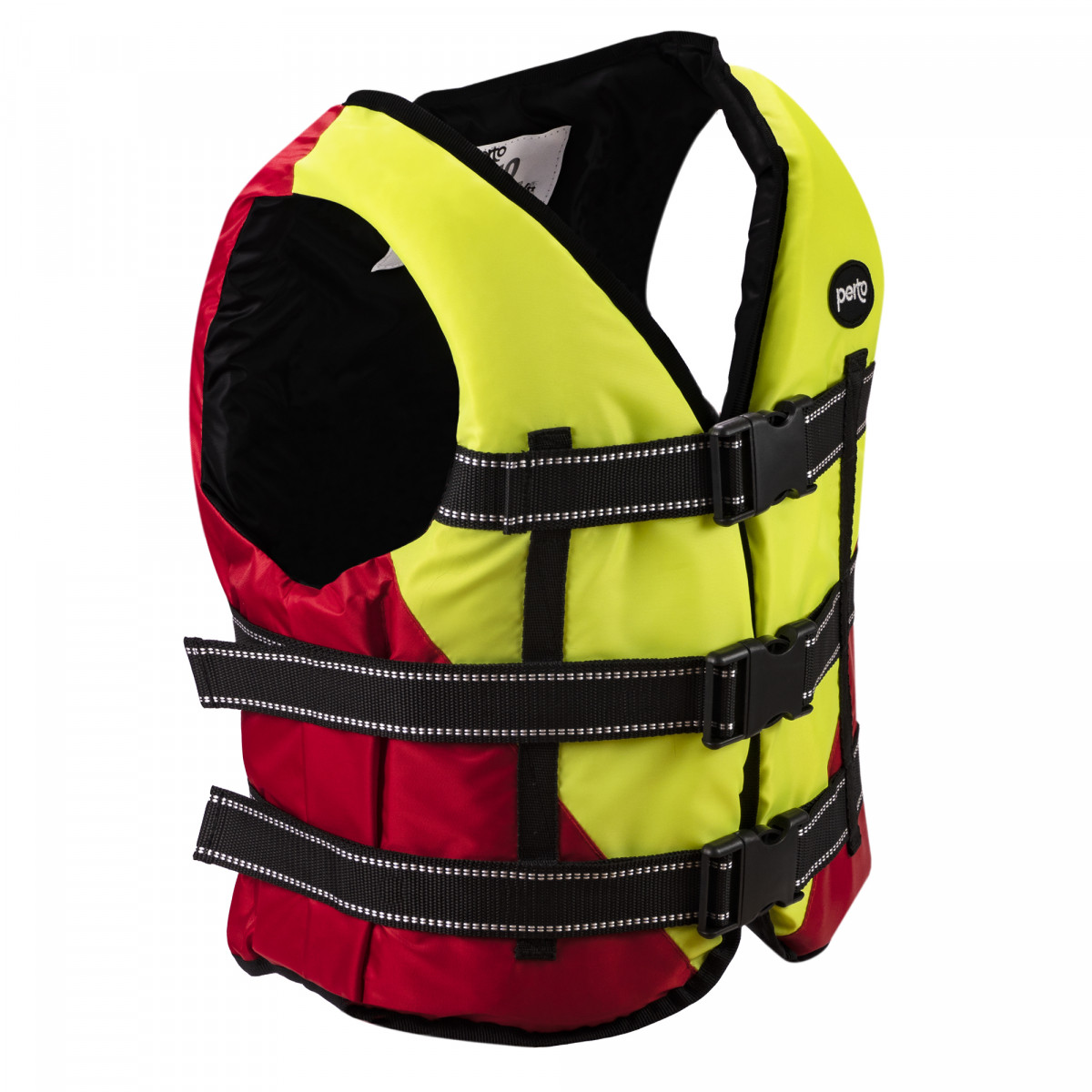 Жилет страховочный PERTO Classic red 50-70 Салатово - Красного цвета для взрослых, оснащен тремя надежными фиксирующими ремнями, что дает возможность хорошо держаться на теле.