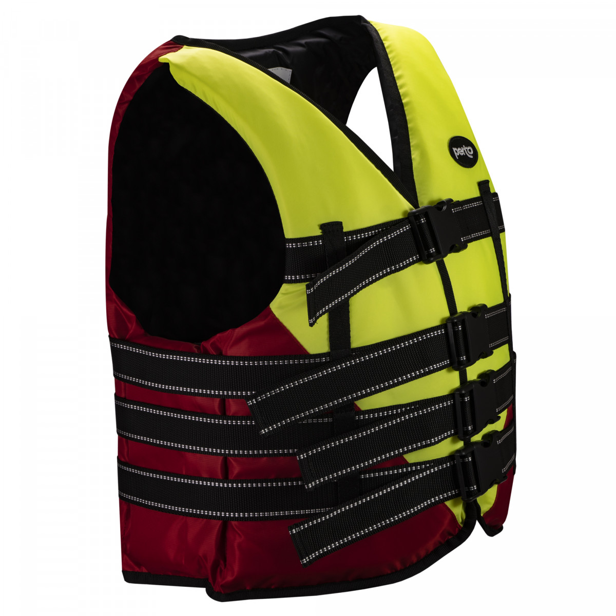 Жилет страховочный PERTO Classic red 70-90 Салатово - Красного цвета для взрослых, оснащен четырмя надежными фиксирующими ремнями, что дает возможность хорошо держаться на теле.