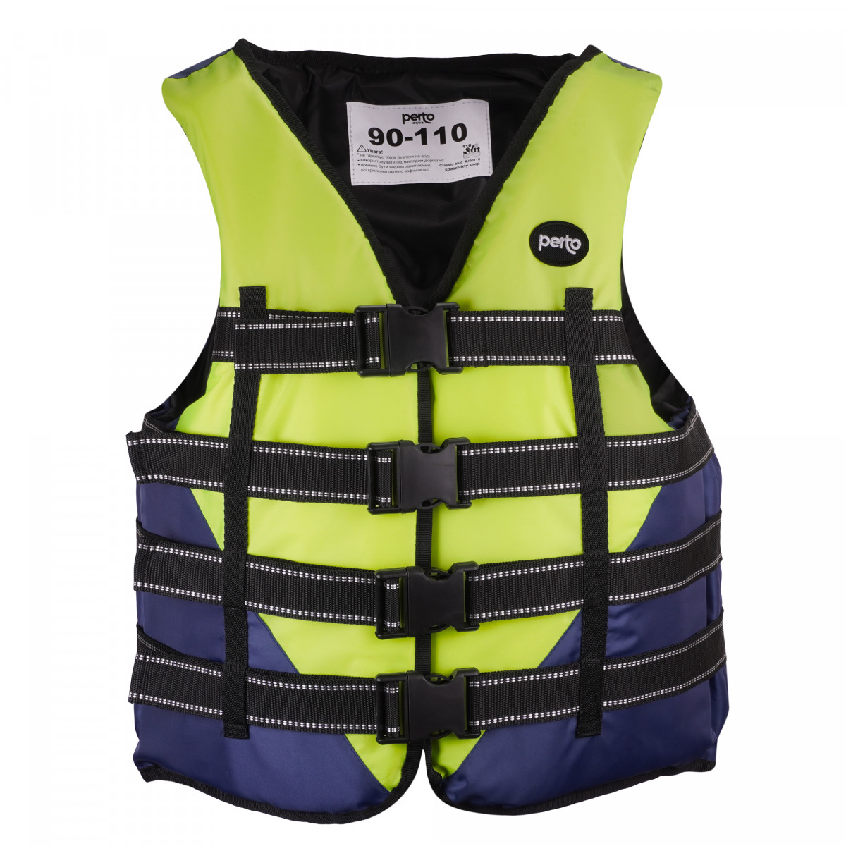 Жилет страховочный PERTO Classic blue 90-110 Салатово - Синего цвета для взрослых, оснащен четырмя надежными фиксирующими ремнями, что дает возможность хорошо держаться на теле.Размеры