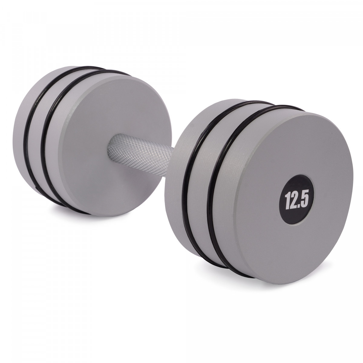 Гантель цельная PERTO Gray 12.5 кг с резинками D120 с фиксированным весом.