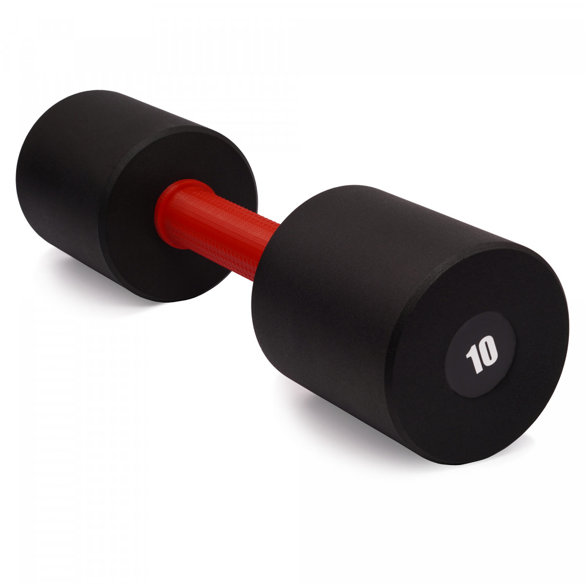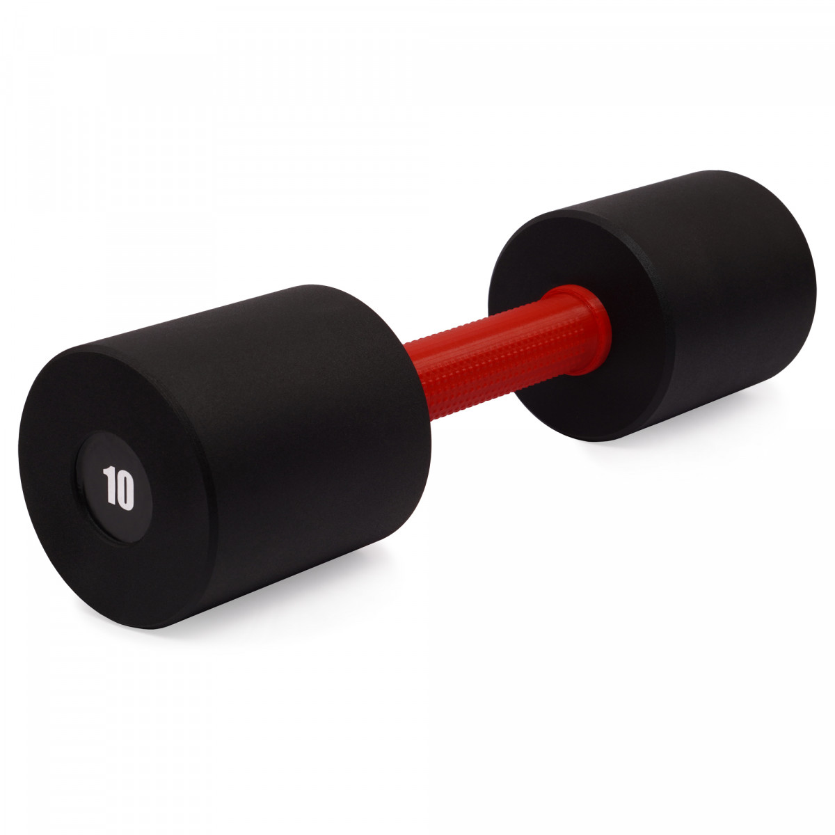 Гантель цельная PERTO Black 10.0 кг с красной накладкой D90 с фиксированным весом.