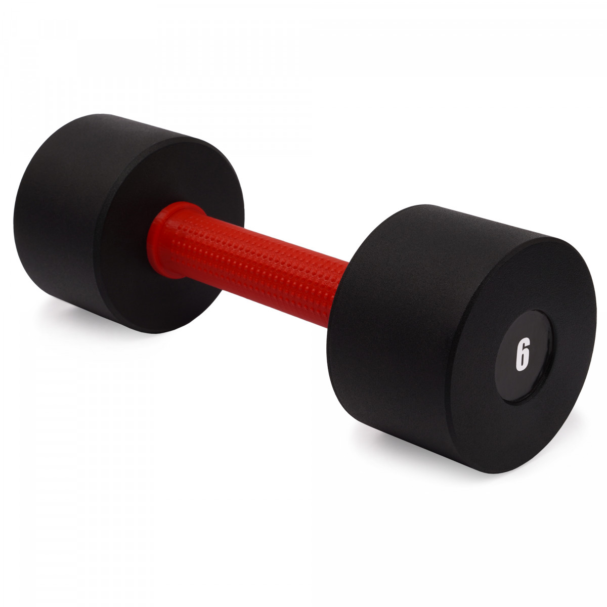 Гантель цельная PERTO Black 6.0 кг с красной накладкой D90 с фиксированным весом.