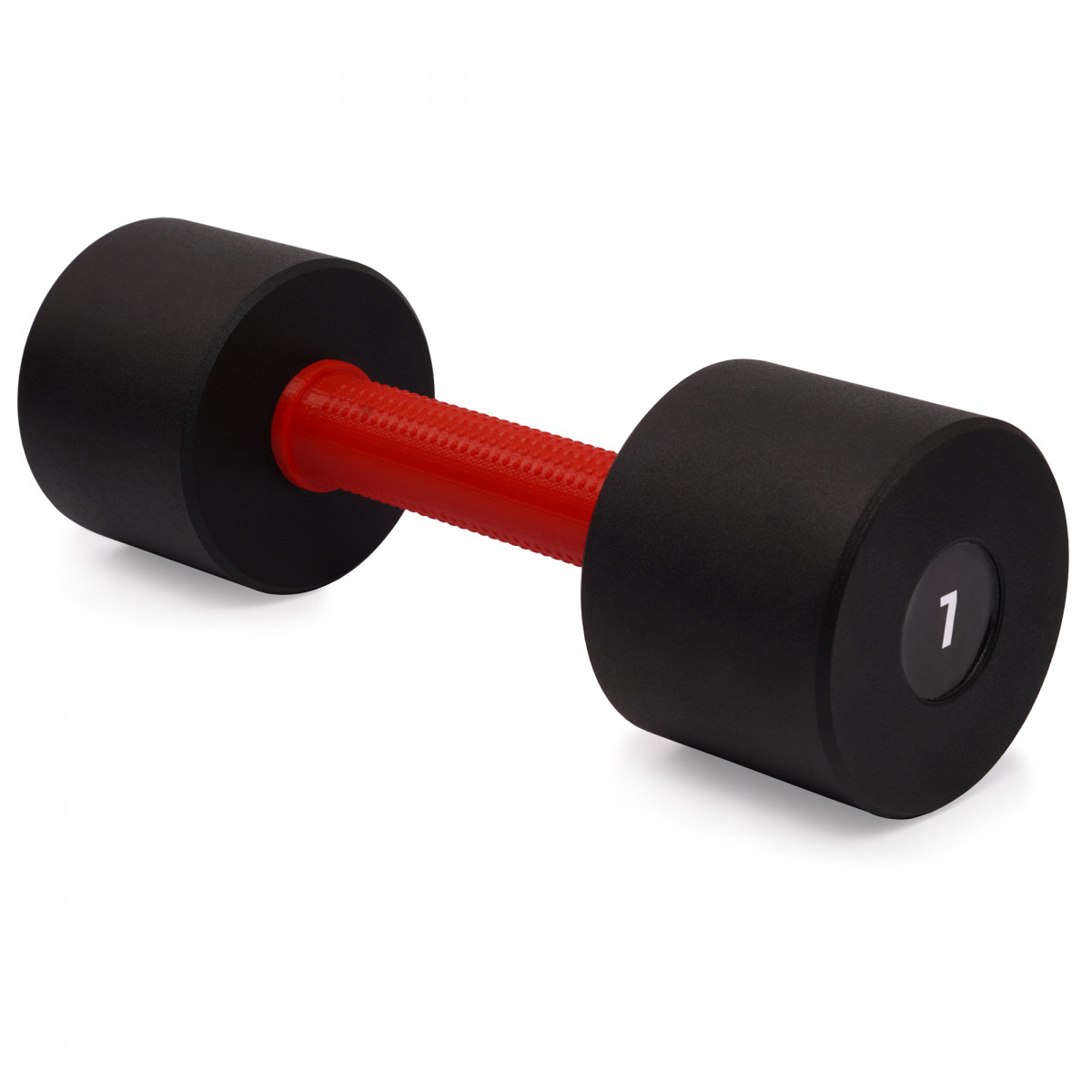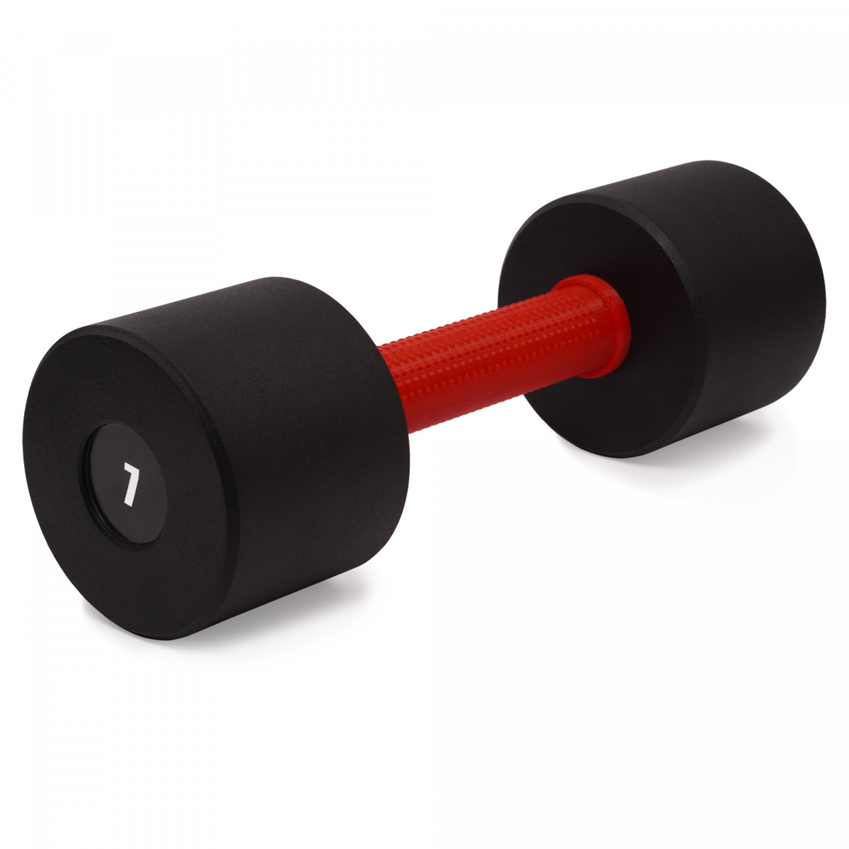 Гантель цельная PERTO Black 7.0 кг с красной накладкой D90 с фиксированным весом.