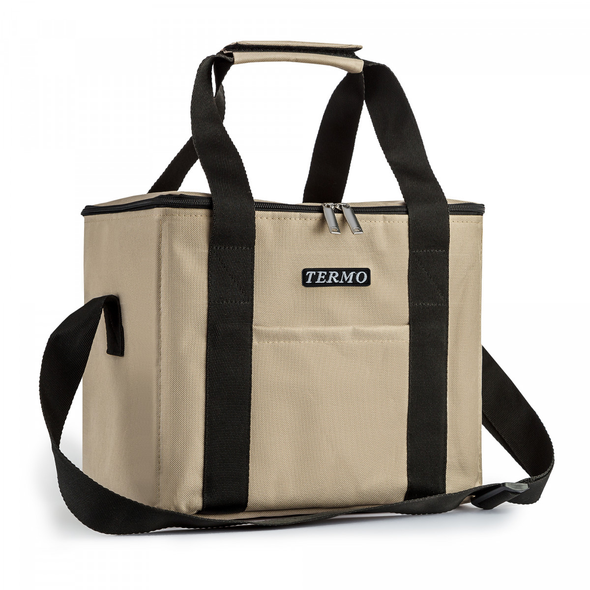 Просторная и стильная термосумка для перевозки охлажденных или нагретых продуктов. Оснащена одним центральным отделением и дополнительным карманом.