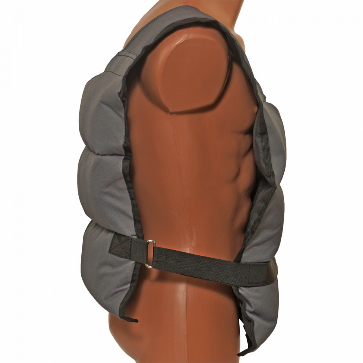Жилет - утяжелитель 20 килограмм используется для тренировок в различных видах спорта помогая сделать их более эффективными. Произведён из крепкой сумочной ткани (600 DEN) c PVC основой. В качестве грузов используется песок, запаянный в полиэтиленовые пакеты (80 мкм). Для фиксации на теле используется пояс из ременной ленты шириной 40 мм. Крепление – «липучка»