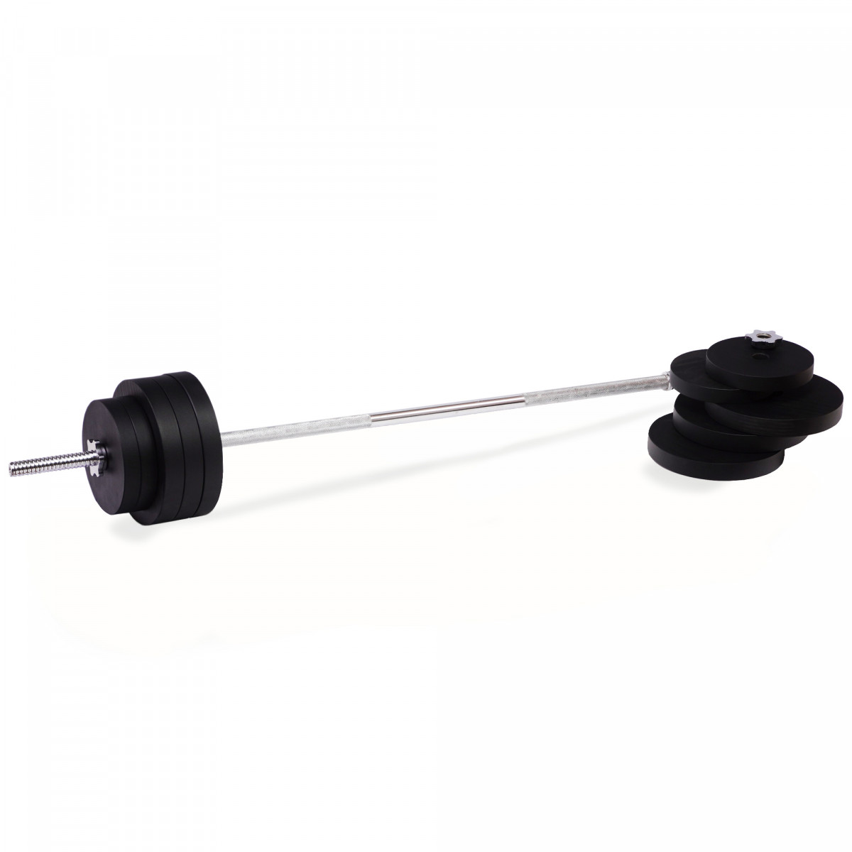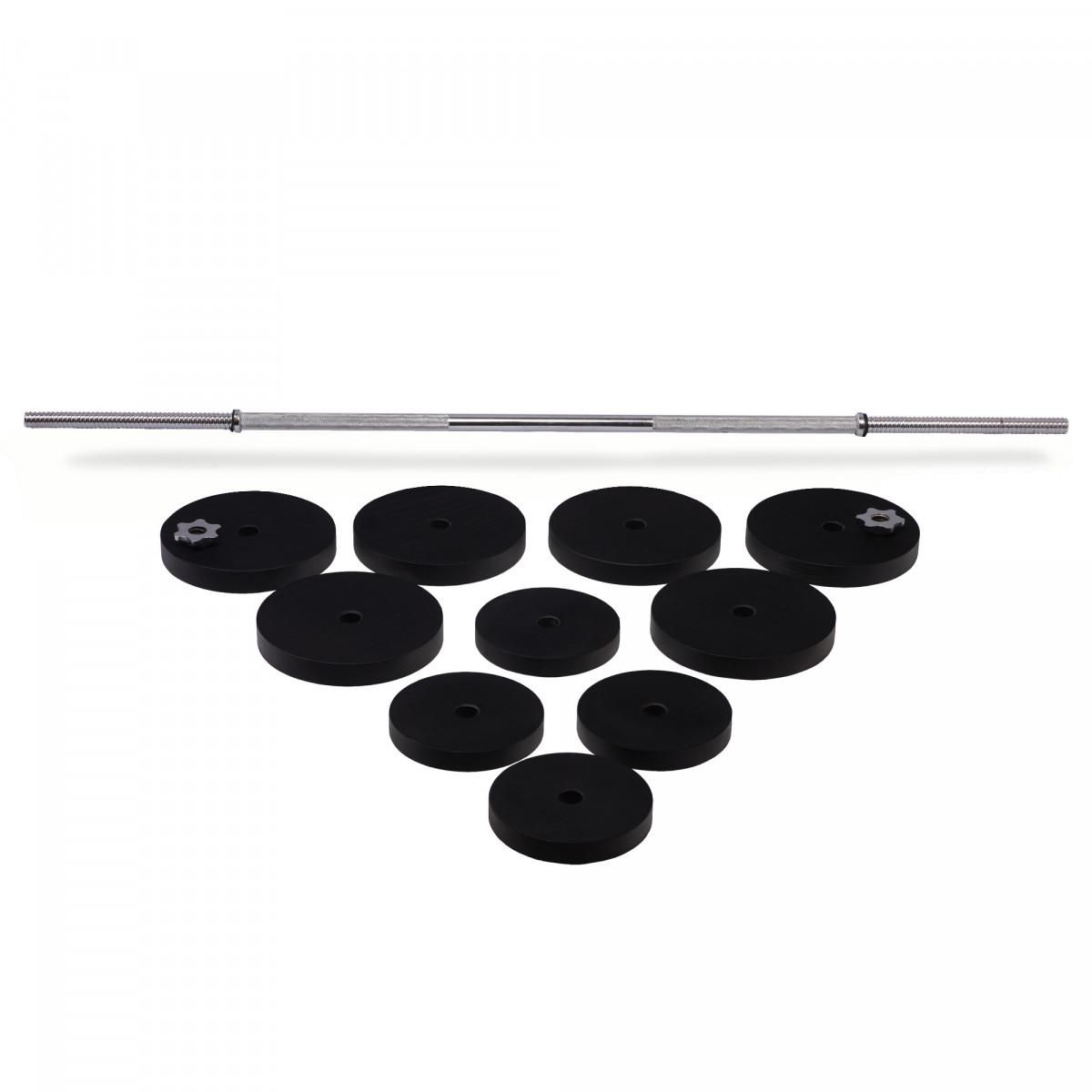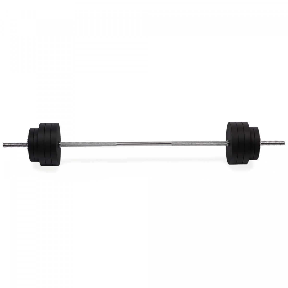 Штанга PERTO Black набірна сталева з прямим грифом 87 кг складається з грифа, дисків, та двух гайкових замків. Посадковий діаметр дисків 27 мм, діаметр дисків та товщина дисків: 5 кг - 180 мм, 26 мм; 10 кг - 230 мм, 28 мм. Диски мають порошкове покриття, що захищає їх від корозії та гарантує їм не тільки відмінний зовнішній вигляд, але і довгий термін служби.