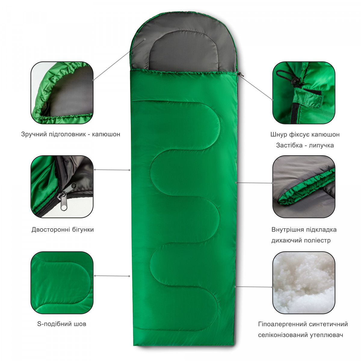 Спальний мішок ковдра осінь/весна PERTO з капюшоном Зелений (SM00005)