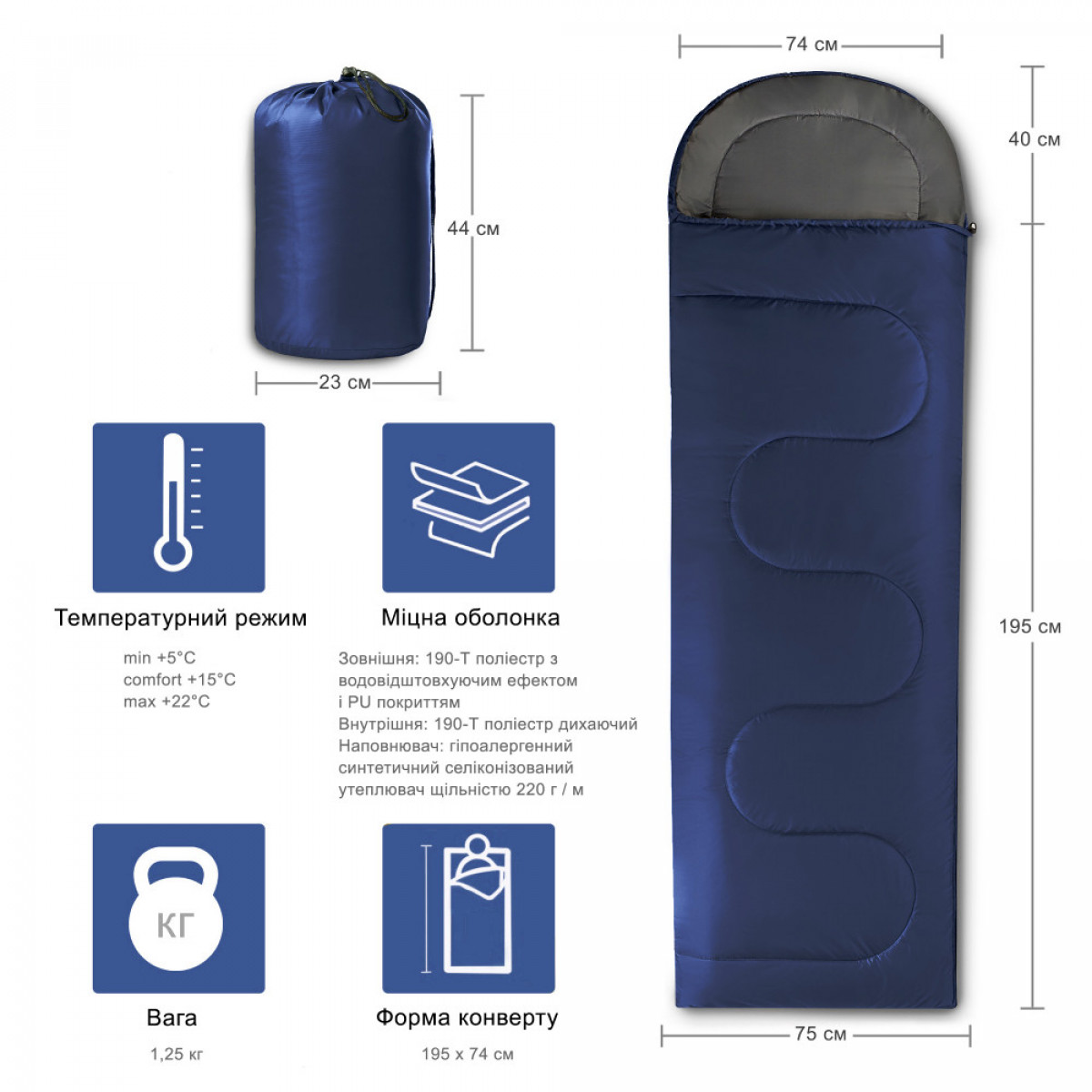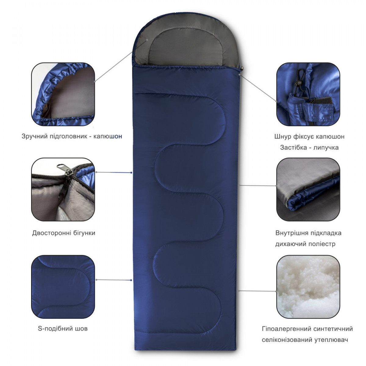 Спальний мішок ковдра осінь/весна PERTO з капюшоном Синій (SM00008)